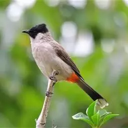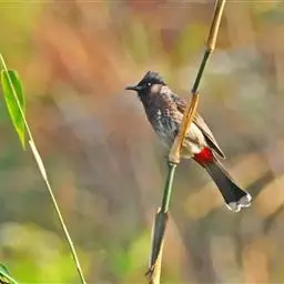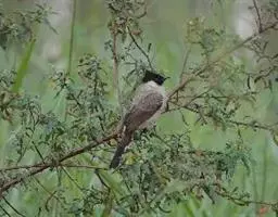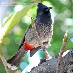 黑喉红臀鹎(学名:Pycnonotus cafer):体长19-23厘米,是一种中等体型的偏褐色鹎。额至头顶、眼先、眼周、嘴基和颏、喉全为黑色,具羽冠,耳羽红褐色。背暗褐到黑褐色。尾下覆羽绯红,尾上覆羽近白,虹膜深褐色;嘴黑色;脚暗角质色至黑色。