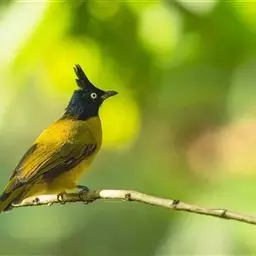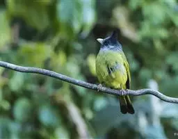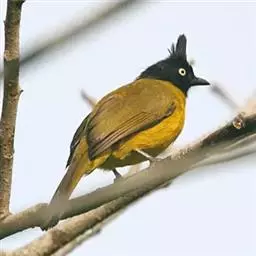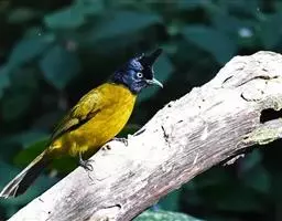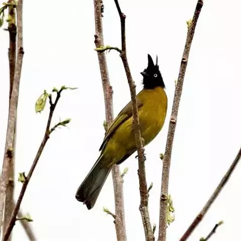 黑冠黄鹎:体长18-21厘米,是一种中等体型偏黄色鹎。整个头、颈、颏、喉黑色,头顶有显著直立的羽冠,…