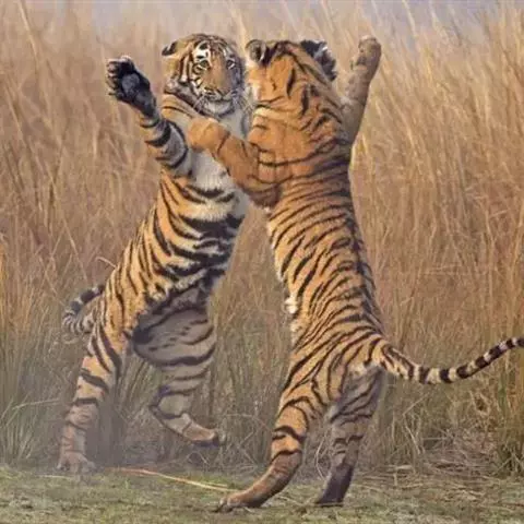 孟加拉虎是肉食目猫科豹属哺乳动物,又名印支虎。头圆、耳短、额阔,额部有数条黑色横纹,…