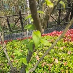 (3)混栽配置 通常采用腊梅、鸡爪枫、黄杨、月季、牡丹、或金钟花、红叶李等树种混栽,构成不同层次,不同物种的灌、乔混合配置。采用自然式的高低相配、错落有致,造成姿态、花色等综合配置的花坛,具有多物种、多层次、花期长等特色。