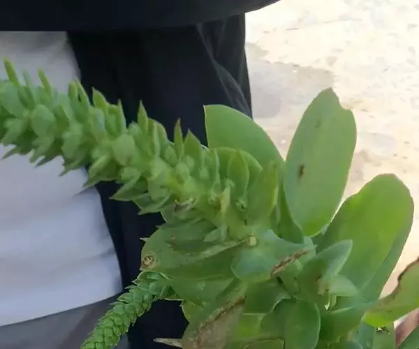 钝叶瓦松〔学名:Orostachys malacophylla (Pall.) Fisch.〕是景天科,瓦松属二年生肉质草本植物。钝叶瓦松属于轴根型植物,茎生叶互生,花序紧密,苞片匙状卵形,花常无梗;萼片长圆形,花瓣白色或带绿色,长圆形至卵状长圆形,雄蕊较花瓣长,花药黄色;种子卵状长圆形。7月开花,8-9月结果。