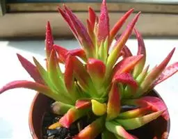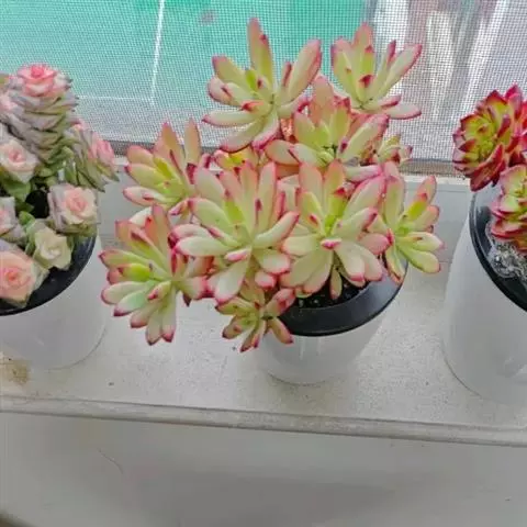 三色花月锦是景天科青锁龙属多肉植物,燕子掌的栽培品种,叶片有红、黄、白斑块,色彩斑斓。花期秋季。