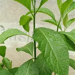桂叶黄梅常绿灌木,株高1-3米,树干修长,密被小而灰白色的突起,树皮褐色,枝叶较稀。叶互生,近无柄;叶片椭圆形,革质,长4-7厘米,宽1.5-4厘米,先端渐尖,基部圆,边缘有针状锯齿,中脉明显。新抽嫩叶浅红色,老叶变成有光泽的绿色。