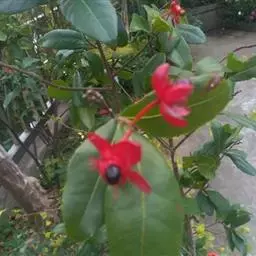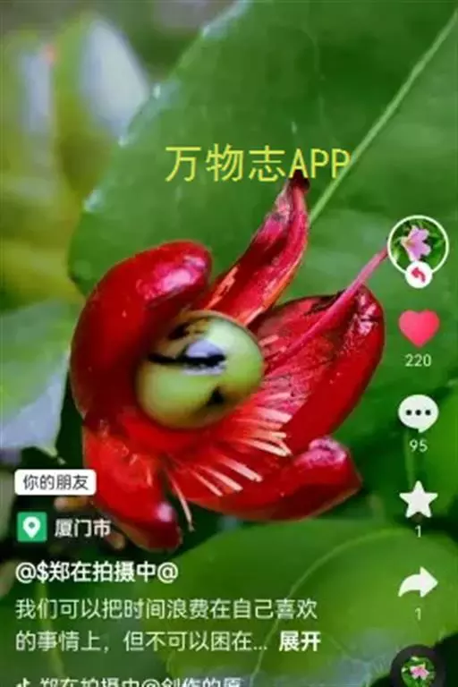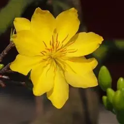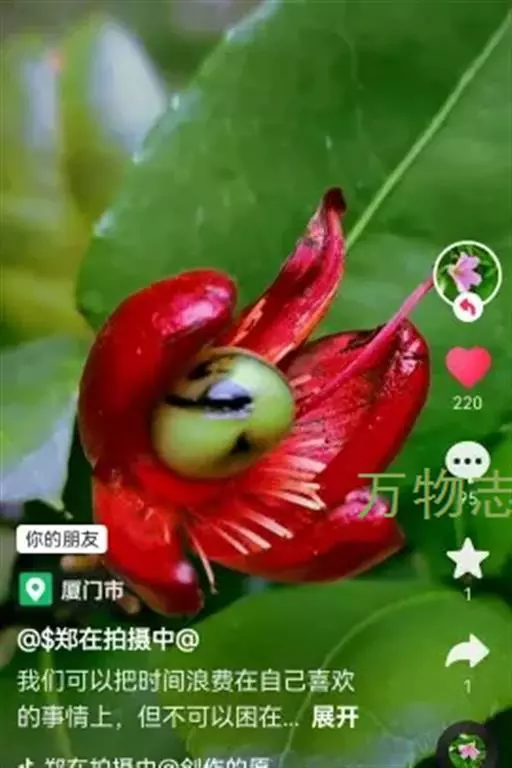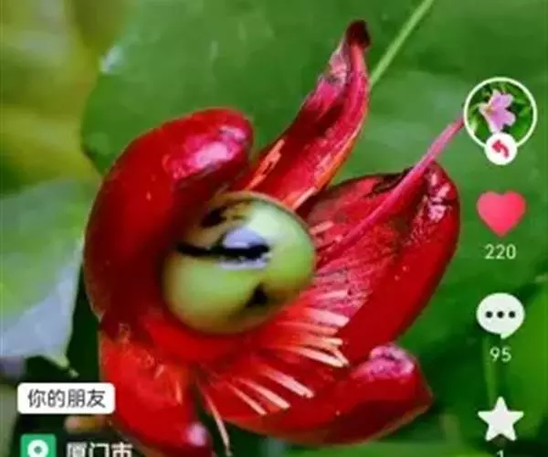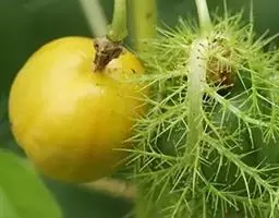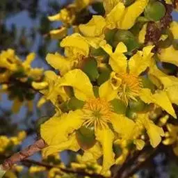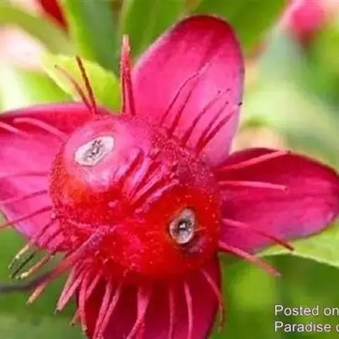 花小,两性,直径2-4厘米,离瓣花;花萼5片,结果时增大,宿存,暗红色;花瓣5片似勺形,长2厘米左右,黄色;雄蕊多数,黄色,花丝宿存;子房上位。每朵花开后,花托上着生I-6个浆果状的小核果,橄榄形,径5-7毫米,长7-11毫米,果皮薄,未成熟时绿色,成熟时黑色,每个果实中有种子1粒,褐色。