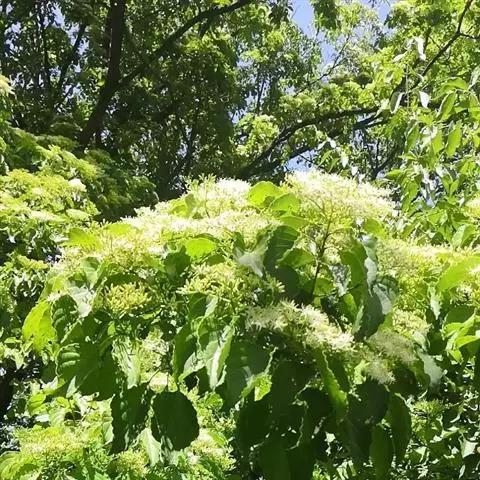 该种与凉生梾木S. alsophila(W. W. Smith) Holub的关系相近,但叶片为薄纸质,多少为长圆卵形,长7-8厘米,宽4-5.5厘米,上面黄绿色,下面淡白色,侧脉7-8对,在上面微凹下,下面明显,叶柄长1.5-2厘米,伞房状聚伞花序长7-8厘米(包括总花梗在内),宽8-10厘米,多花,花白色,后变为黄色,花瓣几为披针形,长5毫米,宽达1.5毫米,雄蕊稍伸出花外或与花瓣等长,花柱较长,常长达4毫米,易于区别。