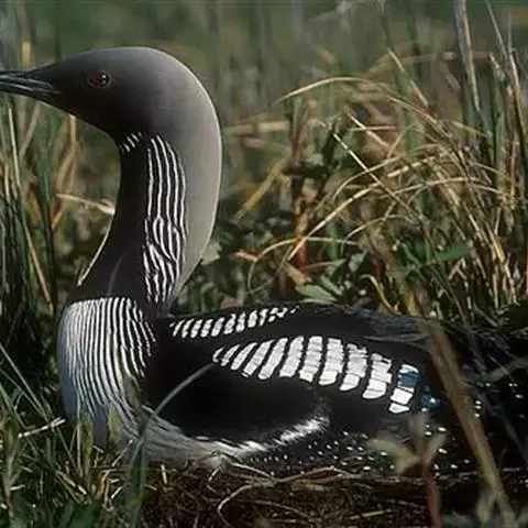 白嘴潜鸟繁殖期6-8月,繁殖于北极和亚北极苔原和苔原森林地带。营巢于苔原湖泊岸边,巢由枯草堆积而成,极为简陋。每窝产卵1-2枚,通常2枚。卵褐色、具小的暗褐色斑,卵的大小为80-95mm X 53.5-66mm,平均89mm X 56.9mm。