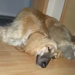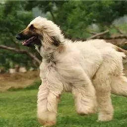 阿富汗猎犬全身披丝绢状的长毛,毛色鲜艳,呈多种颜色,背中线附近毛短,…
