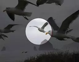 灰翅鸥,夏羽头、颈、腰、尾白色;肩、背和翅上覆羽鸽灰色。冬羽和夏羽相似,但头和颈具淡褐色纵纹,有时…