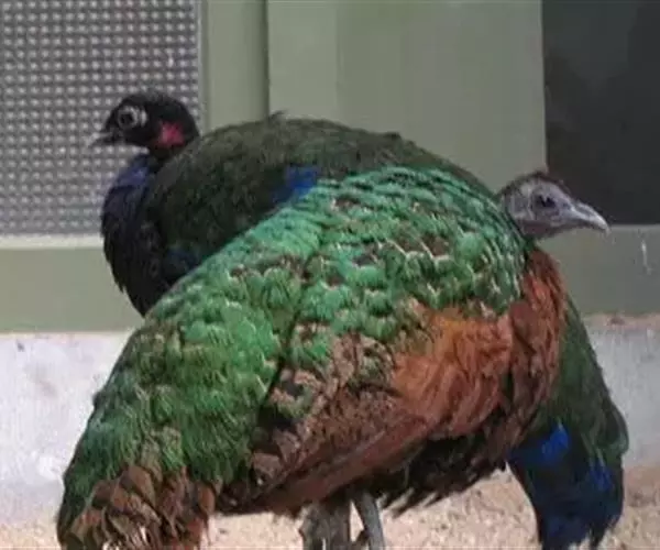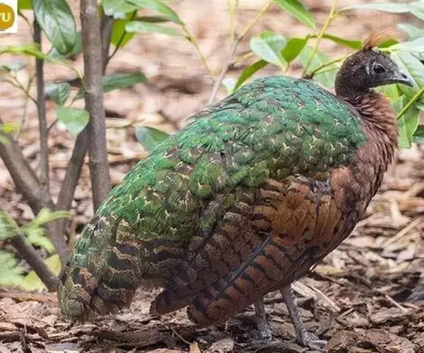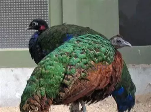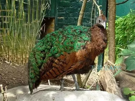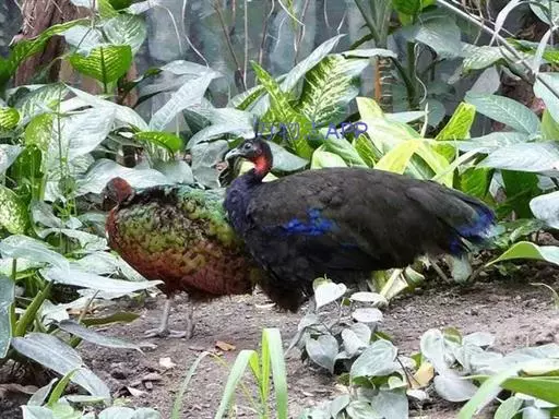 刚果孔雀(学名:Afropavo congensis):体型较小,体长60-70厘米,体重约1.2-1.5千克。刚果孔雀有违鸟类世界一般规律的生理特征,雌性比雄性更漂亮。雄性通体呈紫蓝色,颈部裸露出鲜红色的皮肤,雌性则呈红褐色,背部生有发出金属光泽的翡翠色羽毛。