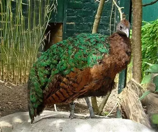 刚果孔雀 刚果孔雀没有固定的繁殖季节,何时生儿育女完全取决于当地雨季到来的日期,雄鸟在茂密的灌木丛深处用枯枝败叶搭窝,在雌鸟孵卵期间负责保卫工作;雌鸟每次产卵3-4枚,卵呈漂亮的奶油褐色,孵化期约26-28天,幼雏出壳后由双亲共同抚养,1-2年后性成熟,寿命不详。