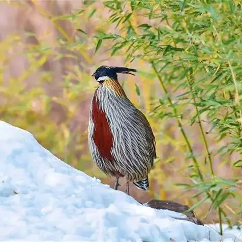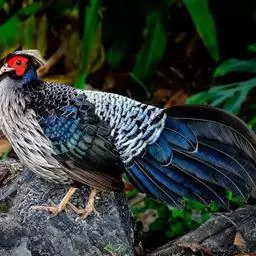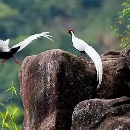 白颈长尾雉:大型鸡类,体长81厘米,体型大小和雉鸡相似。雄鸟头灰褐色,颈白色,脸鲜红色,其上后缘有…