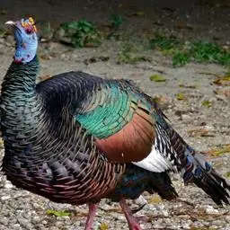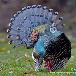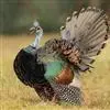 眼斑吐绶鸡:是火鸡科的两种鸟类之一。体型比普通火鸡略小些,体长1米左右,体重2.4-5.4千克,…