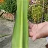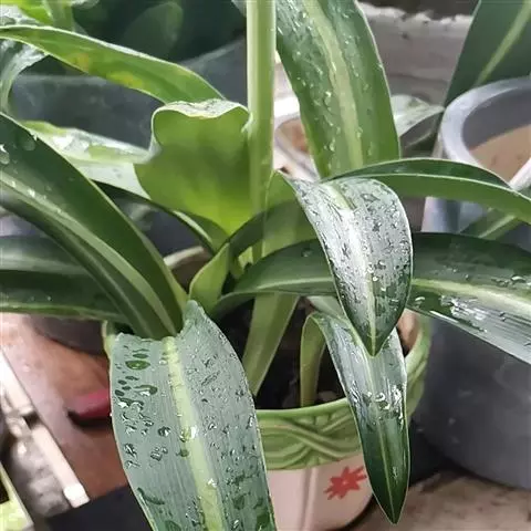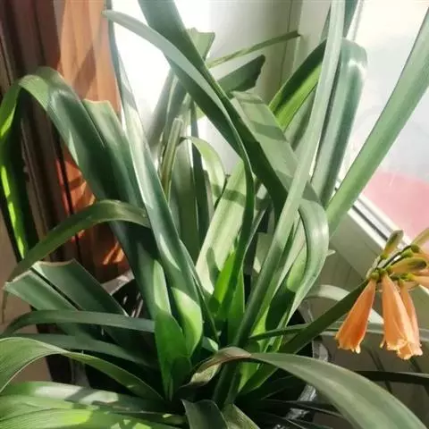 基生叶6-9枚簇生,线形,长40-60厘米,宽约1厘米,顶端尖,深绿色,在花茎上的叶散生,向上渐小呈苞片状。
