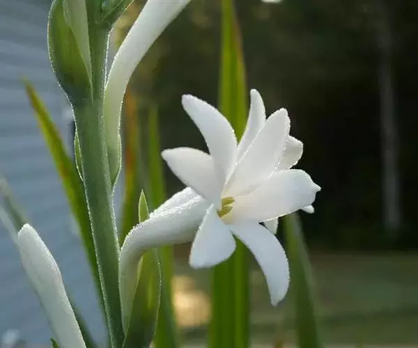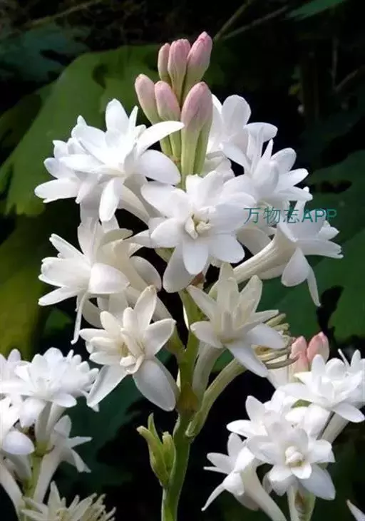 晚香玉翠叶素茎,碧玉秀荣,含香体洁,幽香四溢,使人七月忘暑,心旷神怡。