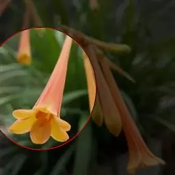 长筒石蒜草本,地生。鳞茎卵球形;叶披针形;伞形花序,有花5-7朵,花白色;花被裂片腹面稍有淡红色条纹,…