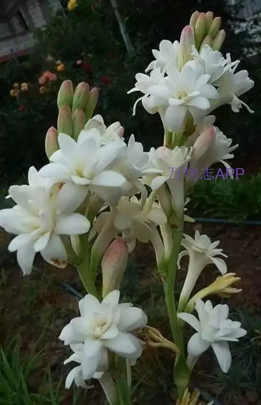 晚香玉花茎长,花期长,是切花的重要材料,还是布置花坛的优美花卉。