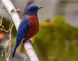棕胸蓝姬鹟:属小型鸣禽,体长10-13厘米,体重6-10克,是一种体型很小的灰蓝及棕色鹟,…