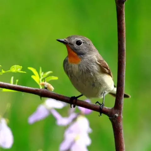 橙胸姬鹟:体长12-16厘米,是一种体型略小的林栖型鹟。尾黑而基部白,上体橄榄褐色,额具一白色横带,…