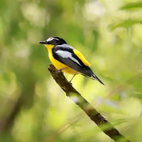 白眉姬鹟是小型鸟类,体长11-14厘米。雄鸟上体大部黑色,眉纹白色,在黑色的头上极为醒目。腰鲜黄色,…
