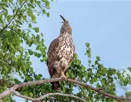 鹰雕,是隼形目鹰科鹰雕属大型猛禽,俗称熊鹰、赫氏角鹰。其上体暗褐色,头后冠羽常竖立起,…