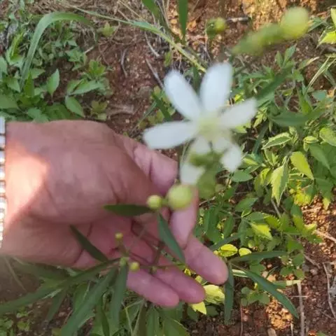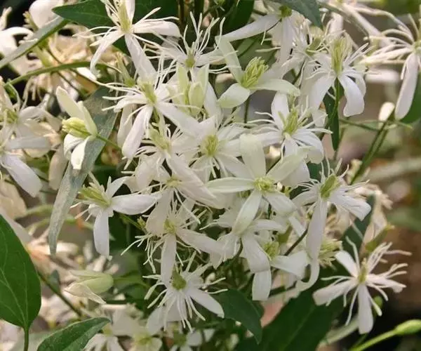 圆锥状聚伞花序腋生或顶生,花序较长而挺直,长可达25厘米,花序梗、花梗近无毛或稍有短柔毛,萼片外面除边缘有绒毛外,其余无毛或稍有短柔毛;多花,花直径1.53厘米;萼片通常4,开展,白色,狭倒卵形或长圆形,顶端锐尖或钝,长0.8-1.5(-2)厘米,宽在,4(-5)毫米内,外面有短柔毛,边缘密生绒毛;雄蕊无毛。