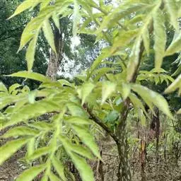 灰枯病。发病初期,感病叶片上产生褪绿斑点,扩展后形成不规则形大病斑,病斑薄纸状,中央浅黄色至深灰色,边缘褐色。发病后期,病斑上产生小黑点,为病原菌的分生孢子器。