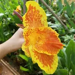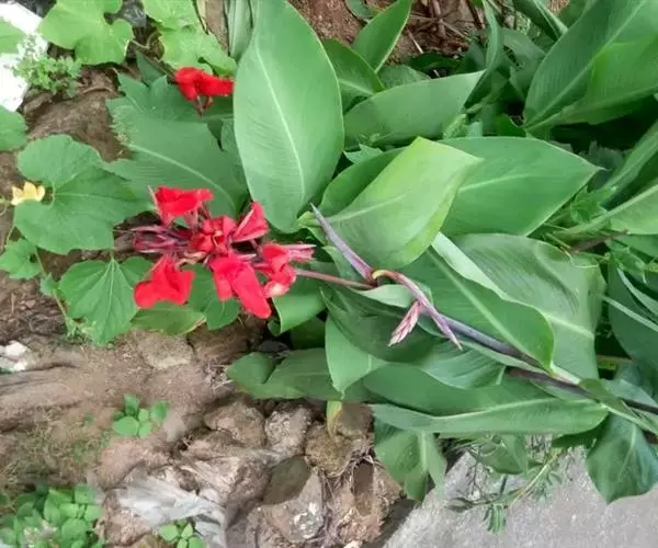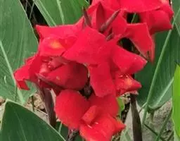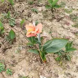 大花美人蕉(学名:Canna generalis L. H. Bailey & E. Z. Bailey):多年生草本植物 ,株高可达100厘米-150厘米,根茎肥大有块状的地下茎 ;叶大 ,螺旋状排列 ,有明显的中脉和羽状的平行脉,叶柄呈鞘状抱茎,无叶舌,叶柄呈圆形,绿色或紫红色;茎叶具白粉,叶片阔椭圆形。花朵较大,可达20 厘米大小,花瓣直伸,具4枚瓣化雄蕊,花色有乳白、黄、桔红、粉红、大红至紫红。