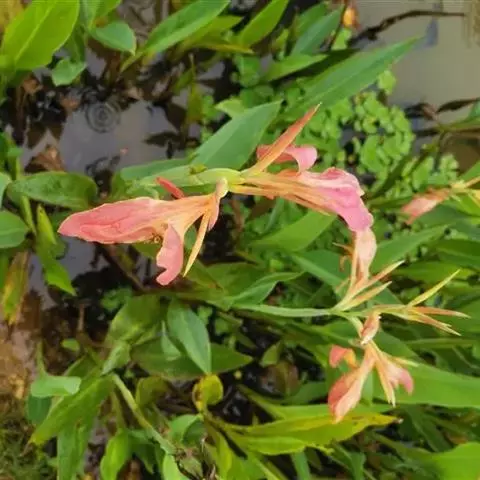 粉美人蕉:是一种球根草本植物。根茎延长,株高1.5-2米;茎绿色。叶片披针形;总状花序疏花,单生或…
