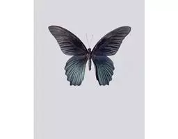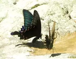 天堂凤蝶翅展可达105mm。前、后翅自基角至后缘约1/2~2/3端为纯净的宝蓝色,后角至后缘1/3…
