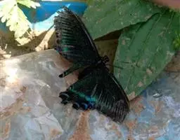 巴黎翠凤蝶中型凤蝶,躯体黑褐色,散布绿色亮鳞。后翅M3脉端有一明显叶状尾突。翅背面底色黑褐色,密布…