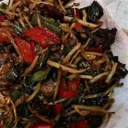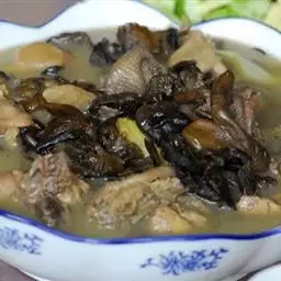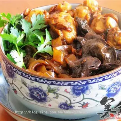 小鸡炖蘑菇是一道东北炖菜。通常是用干蘑菇、鸡肉和粉条一同炖制而成。榛蘑可以衬托出鸡肉的鲜香,粉条滑…