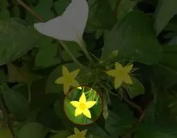 花单生叶腋,花柄短于叶柄,丝状;萼片倒卵状长圆形至匙形,钝,长2-3毫米,背面及边缘被毛;花冠钟状,较短至稍长于萼,黄色,深5裂,裂片长圆状披针形,无毛;雄蕊5,着生于花冠2裂片间弯缺处,花丝短,等长;子房被疏柔毛,2室,具4枚胚珠,花柱2,柱头头状。蒴果近球形,小,短于花萼,直径约1.5毫米,膜质。种子1-2,黄色至褐色,无毛。