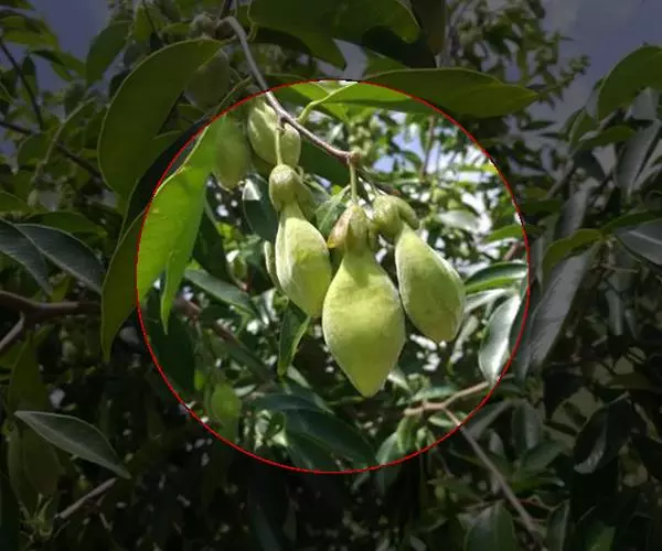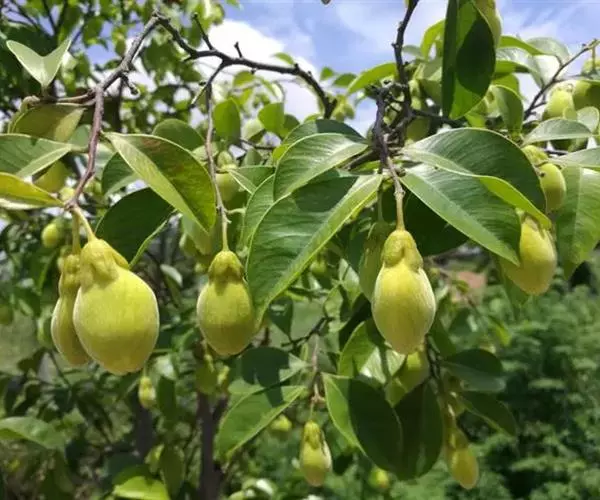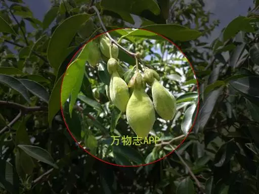 乔木,高5-15米,树皮暗灰色,几平滑,纤维坚韧;小枝圆柱形,具绉纹,幼时被疏柔毛,后逐渐脱落,无毛或近无毛。叶革质,圆形、椭圆形至长圆形,有时近倒卵形,长5-9厘米,宽2.8-6厘米,先端锐尖或急尖而具短尖头,基部宽楔形,上面暗绿色或紫绿色,光亮,下面淡绿色,两面均无毛,侧脉每边15-20,在下面更明显,小脉纤细,近平行,不明显,边缘有时被稀疏的柔毛;叶柄长约5-7毫米,被毛。花芳香,黄绿色,多朵,组成伞形花序;花梗长5-6毫米,密被黄灰色短柔毛;萼筒浅钟状,长5-6毫米,两面均密被短柔毛,5裂,裂片卵形,长4-5毫米,先端圆钝或急尖,两面被短柔毛;花瓣10,鳞片状,着生于花萼筒喉部,密被毛;雄蕊10,排成1轮,花丝长约1毫米,花药长圆形,长约4毫米;子房卵形,密被灰白色毛,2室,每室1胚珠,花柱极短或无,柱头头状。蒴果果梗短,卵球形,幼时绿色,长2-3厘米,直径约2厘米,顶端具短尖头,基部渐狭,密被黄色短柔毛,2瓣裂,2室,每室具有1种子,种子褐色,卵球形,长约1厘米,宽约5.5毫米,疏被柔毛,基部具有附属体,附属体长约1.5厘米,上端宽扁,宽约4毫米,下端成柄状。花期春夏,果期夏秋。