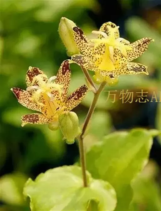 植株体态和花的结构与油点草极相似,但花通常黄绿色;花被片向上斜展或近水平伸展,但决不向下反折,从而有别于油点草。花果期7-9月。