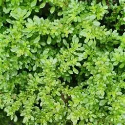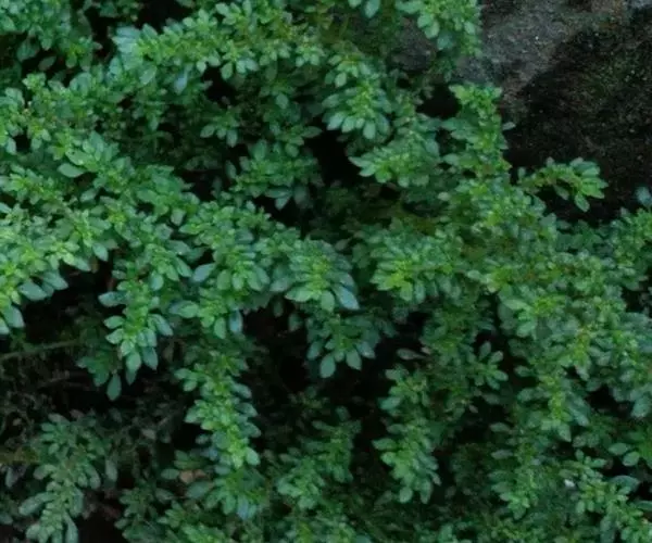 泡叶冷水花 Wedd.Pilea nummulariifollia)是尊麻科冷水花属的多年生常绿草本植物。匍匐蔓生,分枝细而多,全株被短而细的绒毛。叶对生,圆形,质薄,叶缘具半圆形锯齿,脉间叶肉凸起,看上去成泡状,且具短粗毛,具托叶,薄、半透明状,花小不明显。花期为秋季。泡叶冷水花原产热带美洲,西印度群岛及巴拿马等地,在中国南方多见;喜好半日照照耀生长,适合温度为20℃-28℃,喜富含腐殖质的壤土,且喜高温多湿,在南方温暖地区,只要湿度够,即生长良好;繁殖方式一般以扦插繁殖为主,除冬季外,随时可进行。泡叶冷水花叶色青翠,多作吊盆种植,枝蔓下垂十分美观。也可作地被种植;泡叶冷水花吸收二氧化碳的能力比花卉高2.5倍,并且还能消除室内装材料和家具散发的甲醛和二氧化硫等害气体,能吸收净化烹饪时散发出来油烟,迅速净化居室空气,具有抗污吸毒的功能,是经济实惠的天然空气清新剂,被称之为“抗污新星;还是良好的切叶材料。