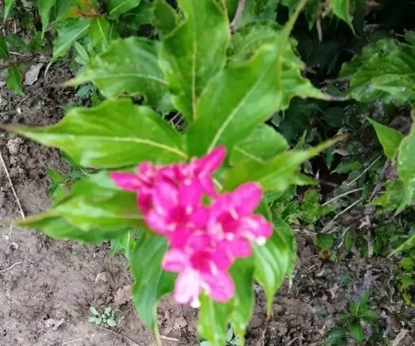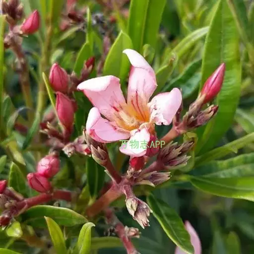 花单生或成聚伞花序生于侧生短枝的叶腋或枝顶;萼筒长圆柱形,疏被柔毛,萼齿长约1厘米,不等,深达萼檐中部;花冠紫红色或玫瑰红色,长3-4厘米,直径2厘米,外面疏生短柔毛,裂片不整齐,开展,内面浅红色;花丝短于花冠,花药黄色;子房上部的腺体黄绿色,花柱细长,柱头2裂。