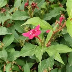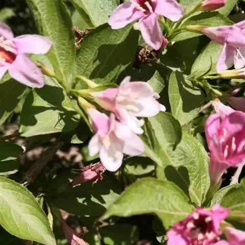 锦带花(学名:Weigela florida(Bunge)A. DC.)灌木,高3米,宽3米,枝条开展,树型较圆筒状,有些树枝会弯曲到地面,小枝细弱,幼时具2列柔毛。叶椭圆形或卵状椭圆形,端锐尖,基部圆形至楔形,缘有锯齿,表面脉上有毛,背面尤密。花冠漏斗状钟形,玫瑰红色,裂片5。蒴果柱形;种子无翅。花期4-6月。锦带花枝叶茂密,花色艳丽,花期可长达连个多月,在园林应用上是华北地区主要的早春花灌木。适宜庭院墙隅、湖畔群植;也可在树丛林缘作花篱、丛植配植;点缀于假山、坡地。