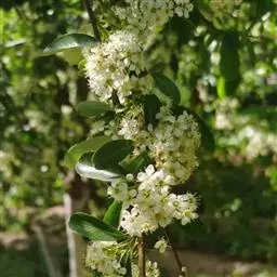 火棘 H. L. Li)是蔷薇科火棘属常绿灌木,老枝呈暗褐色;叶片呈倒卵形,边缘有钝锯齿,齿尖向内弯,…