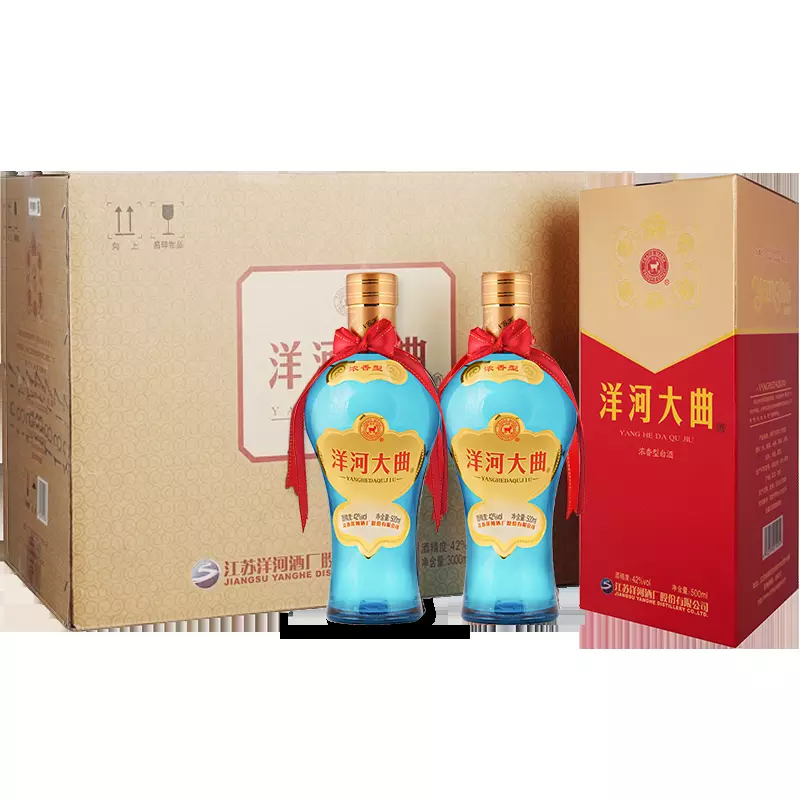 据研究洋河制酒始于两汉而兴于唐宋。江苏省泗阳县的洋河镇在汉朝时早己是个酿酒的名地。洋河大曲以优质黏高粱为原料,再用小麦,大麦,豌豆培养的高温大曲为糖化发酵剂,以美人泉之水酿造而成。洋河大曲属浓香大曲白酒,酒液澄澈透明,酒香浓郁清雅,入口鲜爽甘甜,口味细腻悠长。洋河大曲被中国和日本公认为东方的洋酒,曾多次荣获“国际名酒”和入选中国八大名酒行列。