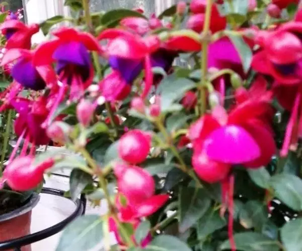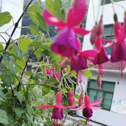 倒挂金钟花形奇特,极为雅致。盆栽用于装饰阳台、窗台、书房等,也可吊挂于防盗网、廊架等处观赏。