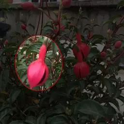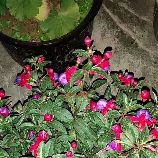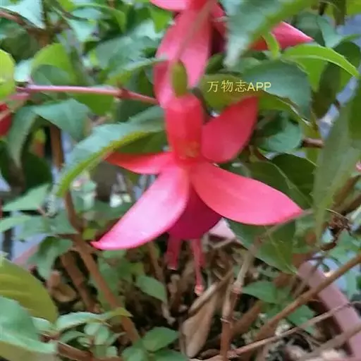 倒挂金钟(拉丁学名:Fuchsia hybrida hort. ex Sieb. et Voss ),别名:灯笼花、吊钟海棠。多年生半灌木,茎直立。高50-200厘米,粗6-20毫米,多分枝,被短柔毛与腺毛,老时渐变无毛,幼枝带红色。叶对生,卵形或狭卵形,长3-9厘米,宽2.5-5厘米。喜凉爽湿润环境,怕高温和强光,以肥沃、疏松的微酸性壤土为宜,冬季温度不低于5℃。