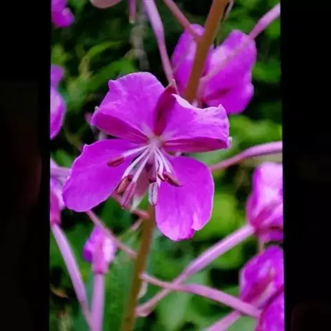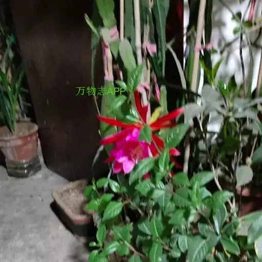 花两性,单一,稀成对生于茎枝顶叶腋,下垂;花梗纤细,淡绿色或带红色,长3-7厘米;花管红色,筒状,上部较大,长1-2厘米,径3-5毫米,连同花梗疏被短柔毛与腺毛;萼片4,红色,长圆状或三角状披针形,长2-3厘米,宽4-8毫米,先端渐狭,开放时反折;花瓣色多变,紫红色,红色、粉红、白色,排成覆瓦状,宽倒卵形,长1-2.2厘米,先端微凹;雄蕊8,外轮的较长,花丝红色,伸出花管外的长1.8-3厘米,花药紫红色,长圆形,长2-3毫米,径约1毫米,花粉粉红色;子房倒卵状长圆形,长5-6毫米,径3-4毫米,疏被柔毛与腺毛,4室,每室有多数胚珠;花柱红色,长4-5厘米,基部围以绿色的浅杯状花盘;柱头棍棒状,褐色,长约3毫米,径约1.5毫米,顶端4浅裂。果紫红色,倒卵状长圆形,长约1厘米。花期4-12月。