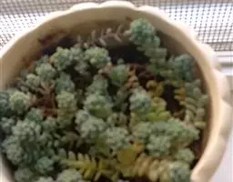薄雪万年草别名矶小松,景天科景天属多年生草本植物,其细小的蓝绿色棒状叶片环绕生长于茎端,…