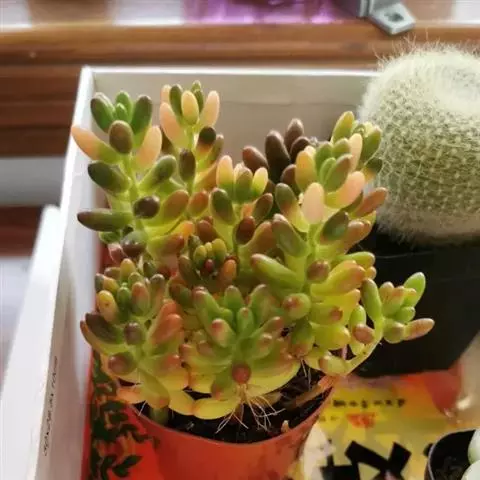 虹之玉是景天科景天属的多肉植物,多年生肉质草本植物。生长速度较快,叶片肉质,呈长椭圆形,约1厘米长,…