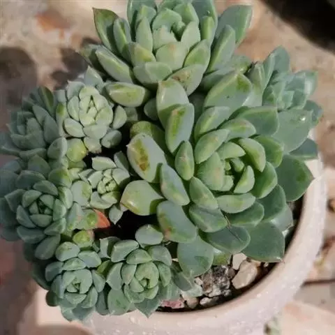 蓝石莲是景天科、拟石莲花属的多肉植物。茎部粗壮,成熟植株茎部木质化。叶片莲座型密集排列,株径不会很大,…