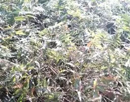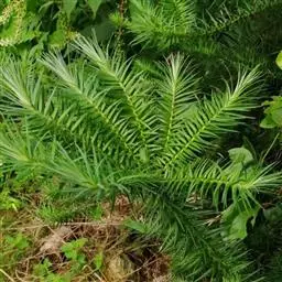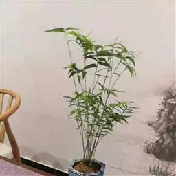 凤尾竹 Raeusch. ex Schult. ’Fernleaf’ R. A. Young)是禾本科,簕竹属孝顺竹的变种。植株较高大,杆高可达6米,竿中空,小枝稍下弯,下部挺直,绿色;竿壁稍薄;节处稍隆起,无毛;叶鞘无毛,纵肋稍隆起,背部具脊;叶耳肾形,边缘具波曲状细长繸毛;叶舌圆拱形,叶片线形,上表面无毛,下表面粉绿而密被短柔毛,小穗含小花,中间小花为两性;外稃两侧稍不对称,长圆状披针形,先端急尖;内稃线形,脊上被短纤毛,花药紫色,子房卵球形,羽毛状。成熟颖果未见。原产中国,华东、华南、西南以至台湾、香港均有栽培。凤尾竹喜温暖、湿润和阳光充足的环境,耐寒。宜土层深厚、肥沃、疏松的微酸性壤土。该种观赏价值较高,宜作庭院丛栽,也可作盆景植物。全草或根入药,味淡、微苦,性寒,有清热利湿、凉血止血、消肿解毒功效,可治痢疾、泄泻等多种病症。凤尾