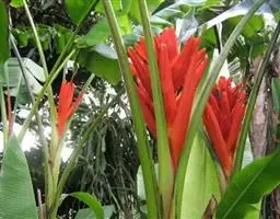 金嘴蝎尾蕉的花序长而下垂,花姿奇特,花色艳丽,花形似鸟喙状,东南亚一带极受人们的欢迎。