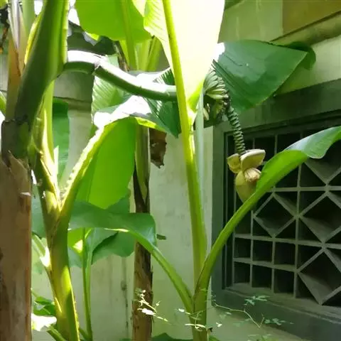 红蕉,假茎高1-2米。叶片长圆形,长1.8-2.2米,宽68-80厘米,叶面黄绿色,叶背淡黄绿色,…