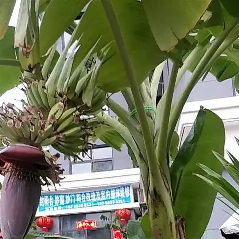 香蕉’),芭蕉科芭蕉属多年生草本植物,植株丛生,有匐匍茎;假茎浓绿有黑色斑点;叶片长圆形,…