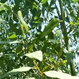 中等乔木,高15-18米;树皮宿存,稍坚硬,粗糙,有纵沟,灰褐色;嫩枝有钝棱,纤细,常下垂。幼态叶对生,叶片狭窄披针形,宽不及1厘米,有短柄;成熟叶片狭披针形,长8-15厘米,宽1-1.5厘米,稍弯曲,两面多微小黑腺点,侧脉以35度-40度开角急斜向上,边脉很靠近叶缘;叶柄长1.5厘米,纤细。